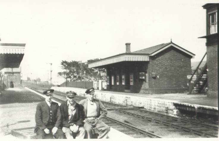 with its high signalbox in the foreground, behind that is the waiting room –