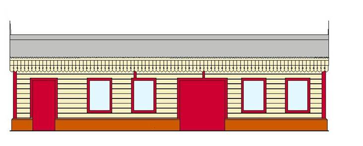 / ticket office, double doors to the waiting room, and the two windows to the