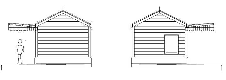 south elevations showing the planked ends, and the position of the proposed