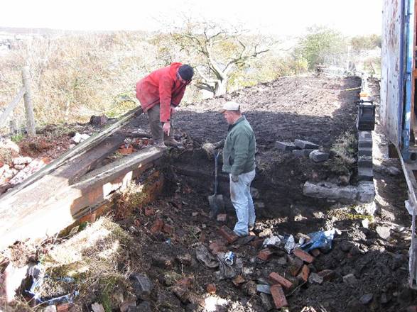 Ian Longworth undertakes preparatory work on the wall, with typical vigour,