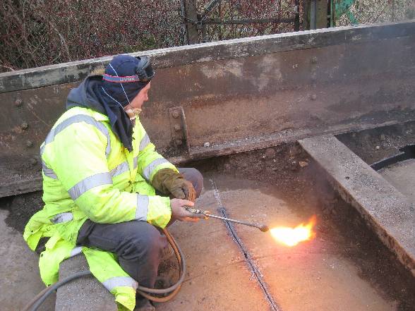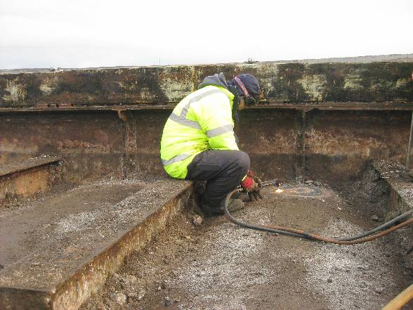 cutting up into furnace sized pieces ready to be taken away by scrap dealers