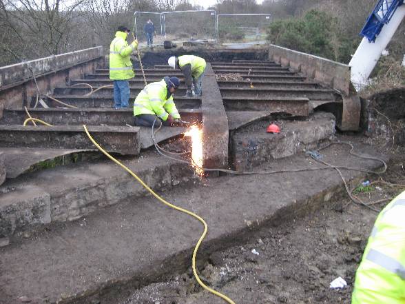 underneath the deck, four holes were cut in the jack arches in readiness. It was announced that the lift would be complete