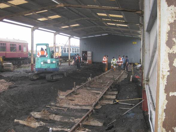 the extension will more than double the length of the shed. This is particularly useful. A BR Mark 1 coach is about 65feet long.