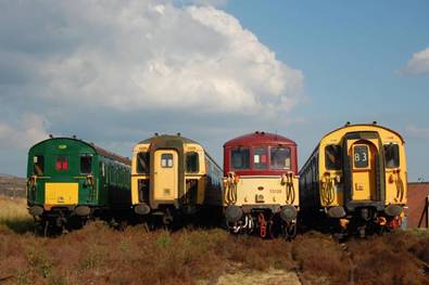 left to right, Class 205 ‘Thumper’ or 2H, Class 421 or 3-Cig, Class 73 or ED,