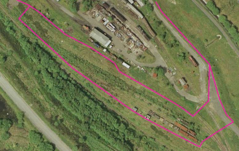 the upper centre, around which the existing fence is shown in cerise.. Below that are the sidings, also delineated